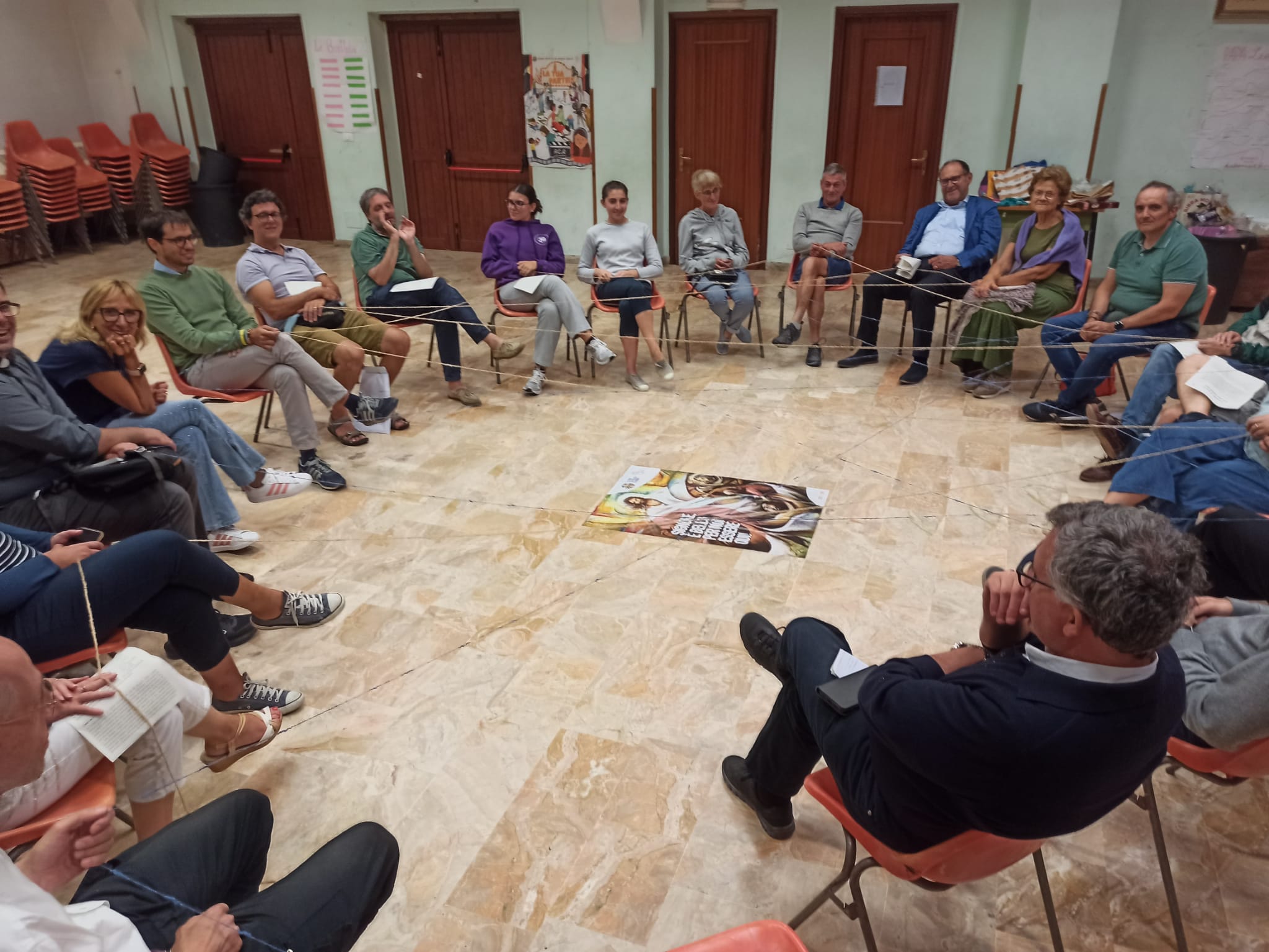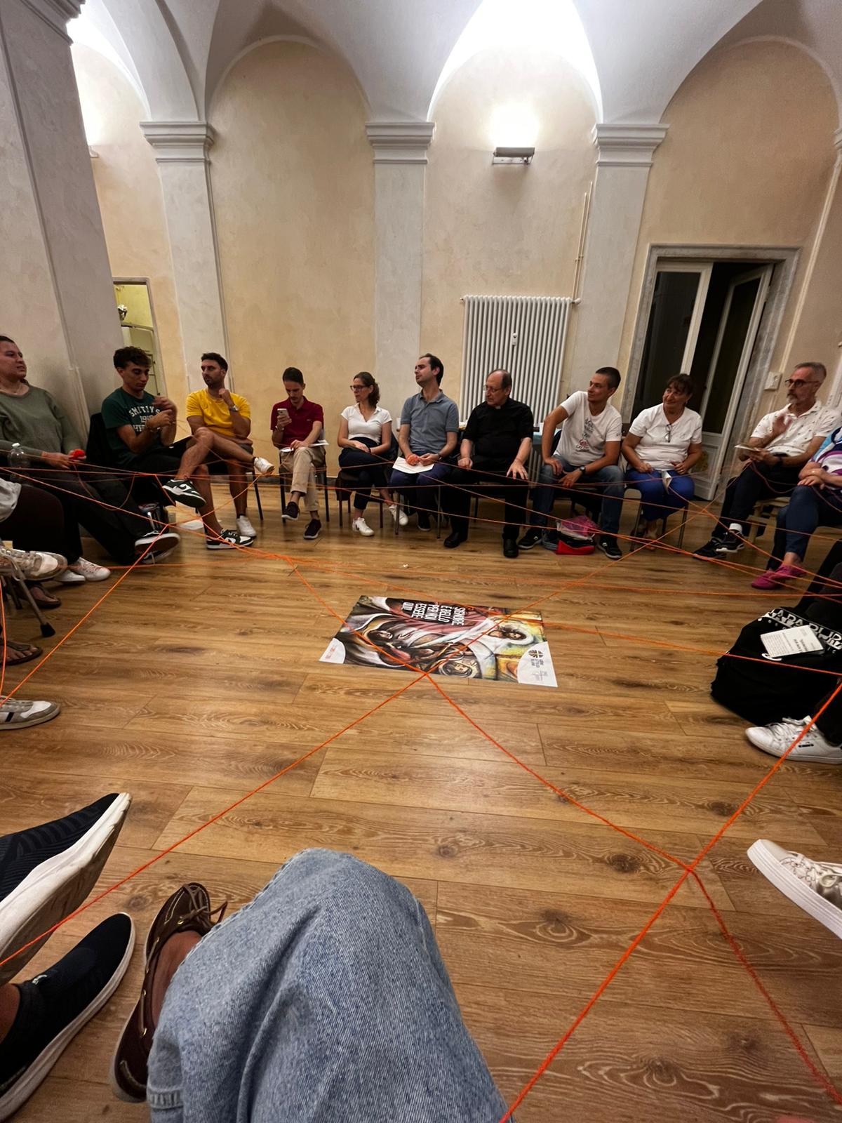 L'incontro si apre con una cena condivisa insieme. È quindi il momento di presentarsi: un gomitolo vola di mano in mano formando una rete di relazioni, mentre le nostre voci si raccontano e realizzano ciò che il filo simboleggia. La serata prosegue con un momento di riflessione sul Vangelo dell'anno (Mt 17, 1-9) commentato da uno degli Assistenti diocesani e un breve rimando allo Statuto, al Progetto Formativo e al Documento Assembleare Diocesano da parte di un membro della Presidenza.